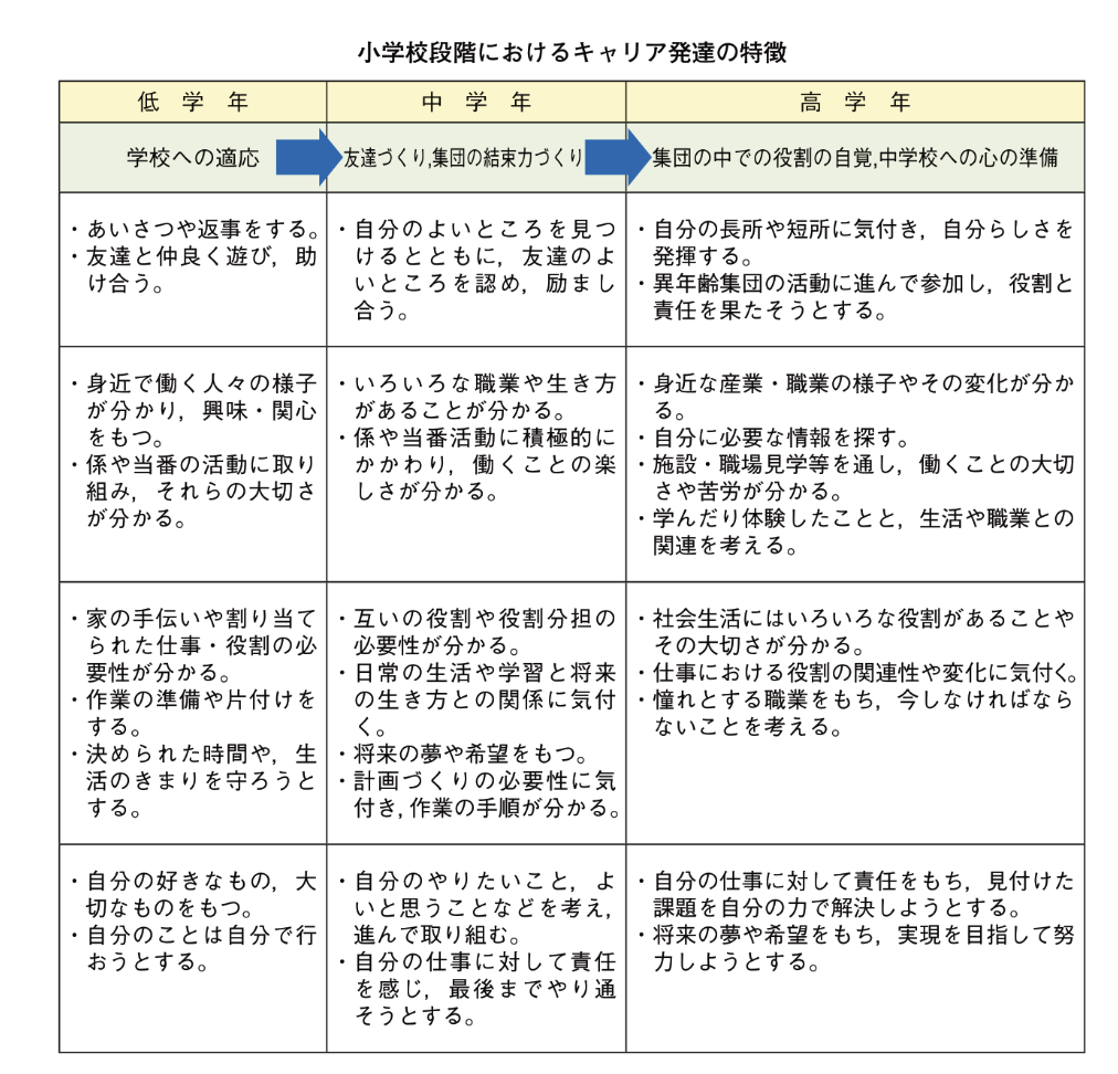 引用:第1節 小学校におけるキャリア発達、第2節 教育課程とのかかわりにおけるキャリア教育(その1) (mext.go.jp) P77
