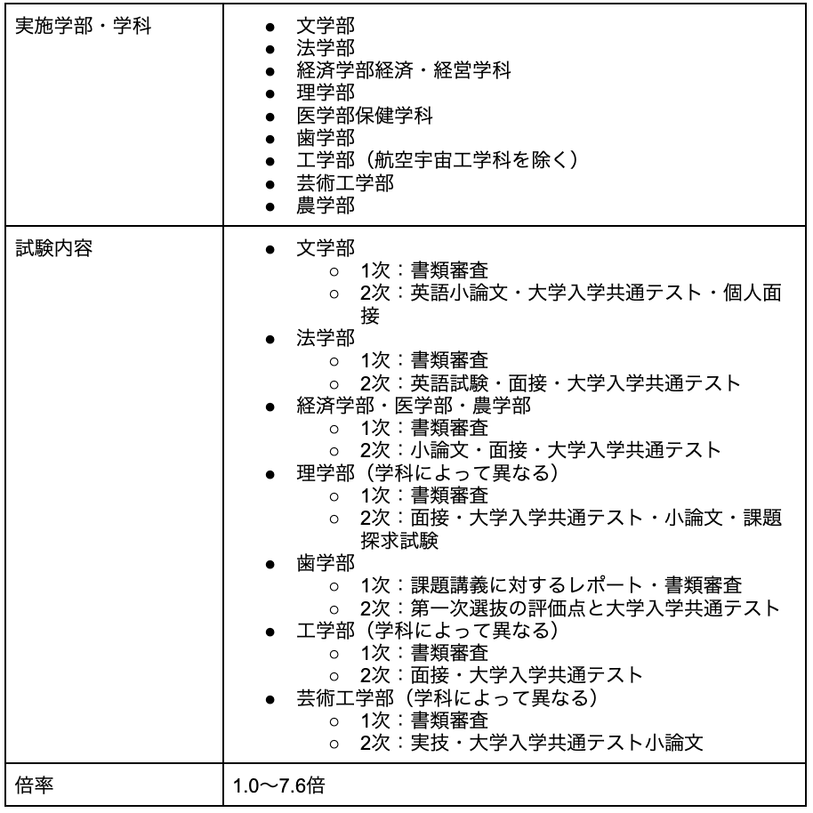 募集要項はこちら:入試案内 :: 学部入試 :: 総合型選抜 | 東京都立大学 (tmu.ac.jp)