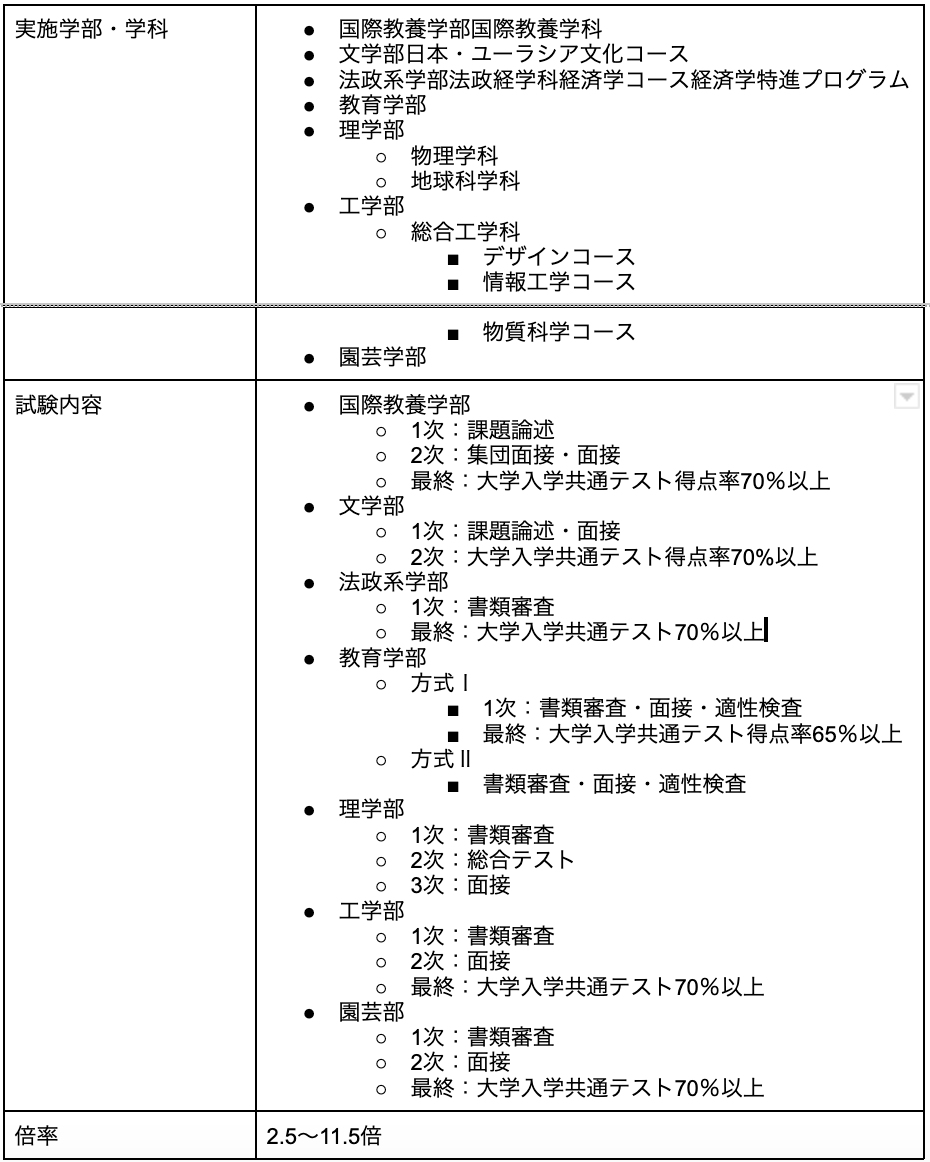 ここまで総合型選抜で受験をおすすめしたい国公立大学を紹介してきました。
