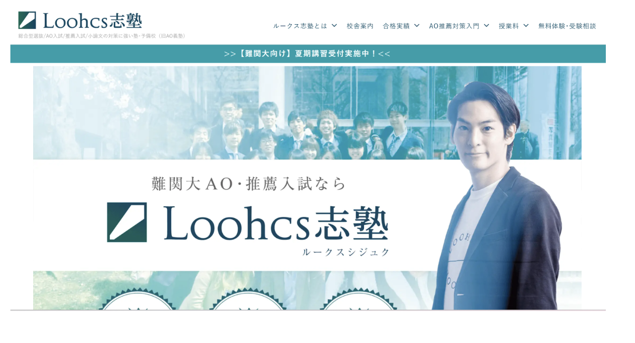 総合型選抜対策におすすめな塾4つ目は、Loohcs志塾です。Loohcsでは志望大学に合わせ一人一人に得意不得意や過去の活動なども踏まえて、受験計画を作成します。志望理由書の書き方や小論文、グループディスカッションも徹底的に指導します。