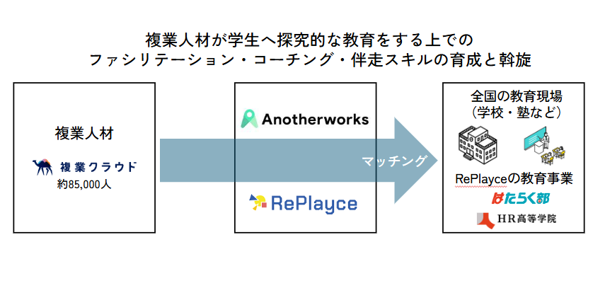 RePlayce、アナザーワークスと業務連携のお知らせ。教育現場における複業人材の活用促進、次世代人材の育成や教師のスキルアップをめざす取り組み