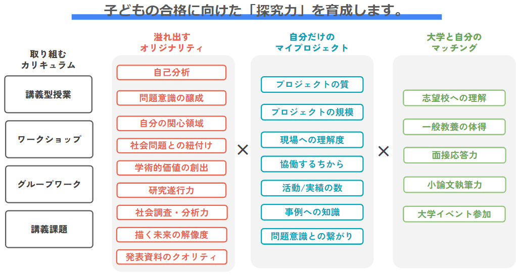 全体カリキュラム:子どもの合格に向けた「探究力」を育成