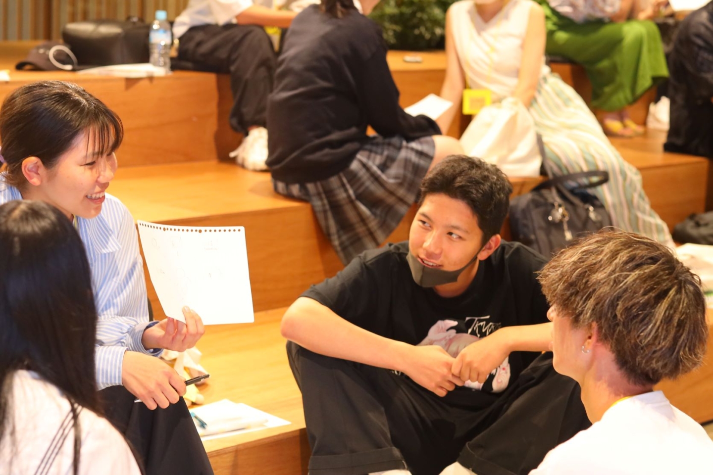 この日、参加したのは、既に「はたらく部」に参加している生徒に加えて、初対面の生徒や、遠方から参加してくれた中学生もいました。イベント開始前は少し緊張した様子も見られましたが、はたらく部代表の山本のファシリテーションで開始した「タニモク」は、スタッフも合間に混じって少し進行をアシストしながら、和やかな雰囲気で対話が始まりました。
